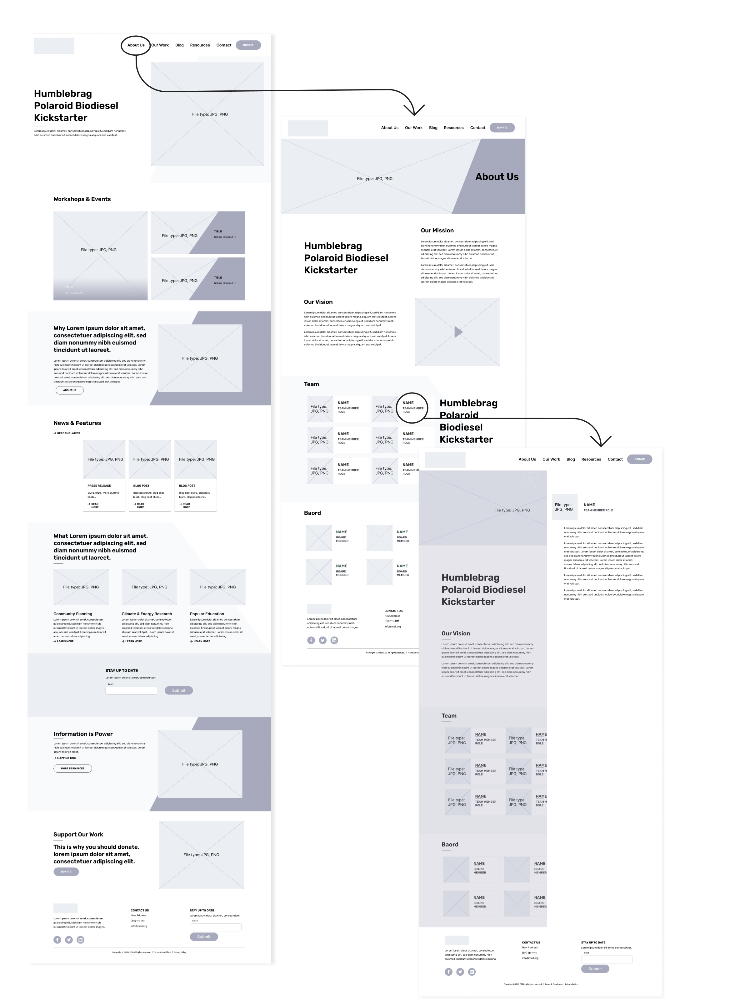 Creating wireframes, I established a component library that would lend itself to flexibility for progressive enhancements and consistency across multiple layouts.